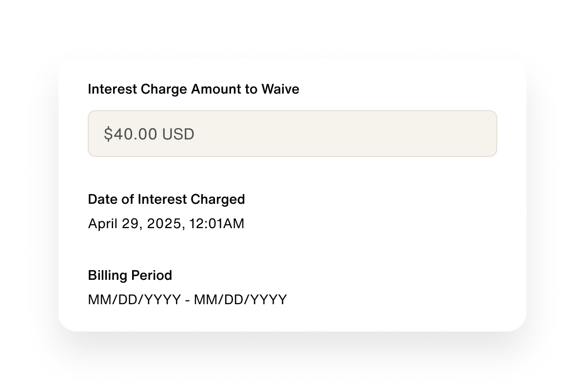 We’ve introduced a new feature that allows users to waive interest charges on credit card transfers. This provides greater flexibility in managing cardholder accounts and efficient exception handling within the issuing dashboard.